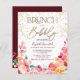 Herfst boho red, oranje en roze burgundy losblauw florale waterverf betaalbaar met een laag budget vrijgezellenfeest feest , brunch en bubbly met handbeschilderde herfst, winterbloeschema en moderne en kische scriptkalligrafie en gouden glitter sparkles confetti, en een gouden elegant schrift.