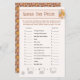 Deze retro raad de prijs baby shower spel. Dit ontwerp is perfect voor een genderneutraal thema met boho-esthetiek met een middeleeuws modern bloemenpatroon en groovy-typografie. Hallo Dit "baby" douche thema is leuk en trendy met een vleugje elegantie. Retro kleuren, boho vibes en een moderne spin! Onderdeel van het Gender Neutral Retro Boho Floral Baby shower collectie. Maak deze unieke uitnodigingen voor babydouches, feestdecor en servies zelf door op "personaliseren" te klikken.