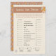 Deze retro raad de prijs baby shower spel. Dit ontwerp is perfect voor een genderneutraal thema met boho-esthetiek met een middeleeuws modern bloemenpatroon en groovy-typografie. Hallo Dit "baby" douche thema is leuk en trendy met een vleugje elegantie. Retro kleuren, boho vibes en een moderne spin! Onderdeel van het Gender Neutral Retro Boho Floral Baby shower collectie. Maak deze unieke uitnodigingen voor babydouches, feestdecor en servies zelf door op "personaliseren" te klikken.