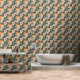 Aardse boho bloemendoodles patroon schil en stick behang. Aardgroene, roze en lichte terracotta tinten.