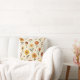 This soft throw pillow features blooms dancing across a soft, cream background, showcasing a whimsical array of flowers in warm shades of red, orange, and yellow. Each flower is playfully illustrated with distinct shapes, featuring vibrant petals and bold centers, complemented by scattered dots and delicate leaves. The cheerful composition evokes a joyful and inviting atmosphere, perfect for springtime energy.