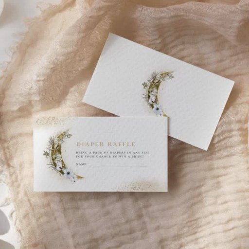 Deze prachtige uitnodiging bevat gouden tekst, een boho florale maan, gouden stof en wolkenaccenten.
