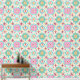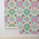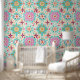 Boho Aqua Pink Flowers Abstract bloemetjesbehang
