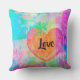 Verschillende lagen texturen en foto's werden digitaal samengevoegd om deze kleurrijke uiting van liefde te creëer. Kleuren zijn roze, limoengroen, geel, rood, sinaasappel, paarse, blauw, aqua, turquoise en meer. Het afbeelding is omgekeerd op de rug, waardoor deze kussens ideaal zijn om aan beide uiteinden van een bank te gaan. De tekst en het lettertype kunnen worden bewerkt om aan uw behoeften te voldoen.