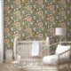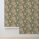 Boho Indische bloemen met olijfgroene achtergrond Behang