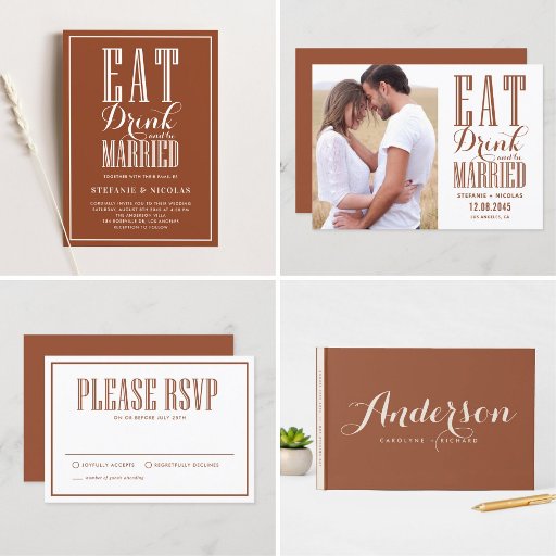 Terracotta Eat Drink and be Married Wedding SetOntworpen door Tessa S