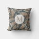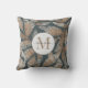 Een aardse Boho stijl monogram gooi kussen met script naam op een aardse rustieke rokerige grijze lichtbruine bladpatroon. Een warm accentkussen met gedempte kleuren.