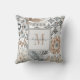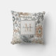 Een aardeachtig Boho stijl monogram gooi kussen met script naam op een aardeachtige rustieke rokerige grijze, lichtbruine en witte abstracte vormen achtergrond. Een warm accentkussen met gedempte kleuren. Dit voorbeeld in duurzame polyesterstof.
