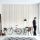 Boho pastel kleur retro gestreepte behang met verticale strepen.