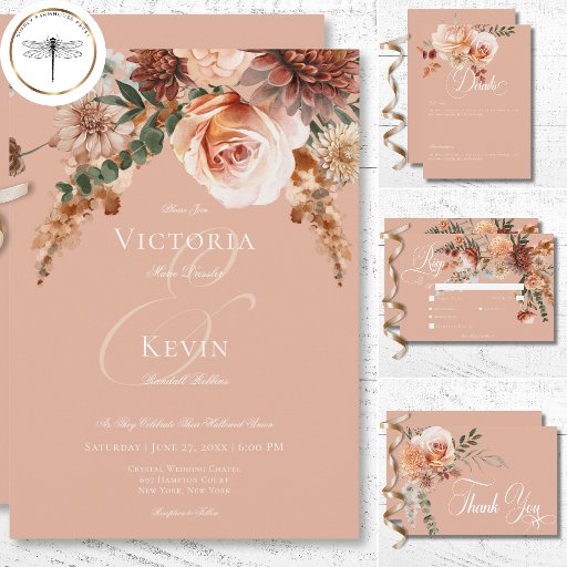 Boho Peach & Rust Floral Peach Blush WeddingOntworpen door Kathe Santillo