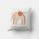 Deze trendy en stijlvolle kussen zijn voorzien van een boho-regenboog, bestaande uit verschillende neutrale tinten en een boeket van oranje en perzikkleurige bloemen. Voeg jouw naam toe aan personaliseren.