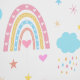 This is cute wallpaper featuring boho rainbow pattern with clouds, hearts ,stars and colorful raindrops designed in pastel pink and blue muted colors. Its cute wallpaper for baby nursery and kids room