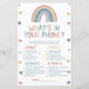Dit is een boho regenboog wat er in je Baby shower spel staat. *Wat zit er in je telefoon? - De gasten zullen punten voor elk punt krijgen dat zij op hun telefoon hebben. Wie de meeste punten krijgt, wint! Het ontwerp bestaat uit een boho regenboog met hart. Het kleurenschema is rood, roze, blauw, geel, groen.