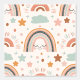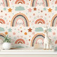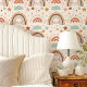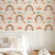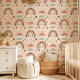 Verlicht de ruimte van uw kleine spruit met dit vrolijke boho regenboogbehang. Met een speels regenboogontwerp in zachte, gedempte kleuren, creëert dit patroon een kalmerende en gelukkige sfeer voor kinderkamers, slaapkamers of speelkamer. De subtiele boho texturen voegen een vleugje gril en charme toe, waardoor het een perfecte keuze is voor elke kinderruimte.