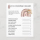 Voeg gelach en speelsheid toe aan de Boho Regenboog Baby Shower met ons 'Boho Regenboog | Raad de juiste prijs baby shower spel'. Een leuke manier om de vaardigheden van je gasten over baby's te testen! Koop het vandaag en creëer onvergetelijke herinneringen!