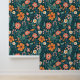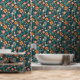 Boho Retro Sinaasappel Groene Bloemen Behang