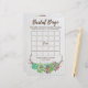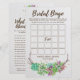 Dit boho rustic floral succulent "bridal bingo" spel is perfect voor een vrijgezellenfeest met een woestijnthema. De voorzijde van de spelkaart kenmerkt "bridal bingo", en de rug van de kaarteigenschappen "wat zei de groep?"met klantgerichte vragen. Het ontwerp is voorzien van prachtige kleurrijke groene, roze en paarse succulenten die zijn aangebracht op een tak met een kruid en zijn voorzien van faux gold confetti. Pas de voorkant van de kaart aan met de naam van de bruid en de douchedatum.