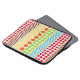 Een elektronicazak met rijen polka-stippen in verschillende maten en boho inspireerde schoppen van roze, blauw, groen, oranje, geel en bogundy.