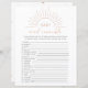 Dit baby shower woord scramble spel is ideaal voor een baby shower of baby strooi. Deze spelkaart heeft een boho sun. Ideaal voor een genderneutraal feest. U kunt dit ontwerp personaliseren door te klikken op "Deze sjabloon personaliseren" of als u het lettertype, de kleuren of de ontwerpelementen op een andere manier wilt wijzigen, kunt u klikken op "Bewerken met de ontwerptool". Antwoordsleutel: 1. Luier 2. Bassinet 3. Fles 4. Wieg 5. Fopspeen 6. Tabel 7 wijzigen. Gevuld dier 8. Wandelwagen 9. Rubber Ducky 10. Deken 11. Teether 12. Formule 13. Hoge voorzitter 14. Mobiel 15. Thermometer 16. Baby 17. Melk 18. Laarzen 19. Eenzijdig 20. Knuffel Beer