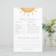 Schijn wat licht op de toekomst met deze leuke en kleurrijke Boho Sunshine Baby shower Prediction & Advice Game! Gasten zullen genieten van het maken van voorspellingen over de aankomst van de kleine, van verjaardag en gewicht tot eerste woorden en eerste voedsel.