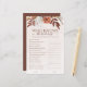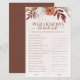 Voeg een vleugje herfstcharme toe aan je vrijgezellenfeest met dit aanpasbare spel. Met een prachtig bloemontwerp in warme herfst tinten, is dit spel ideaal voor een rustiek of bohemien-themafeest. Test de kennis van uw gasten over de aanstaande bruid met leuke en boeiende vragen terwijl u geniet van de feestelijke sfeer. Pas de vragen aan de persoonlijkheid van je bruid aan en creëer een echt unieke en gedenkwaardige ervaring.