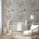 Kleed je kamer aan met dit prachtige, elegante, maar toch moderne boho vlinder wilde bloem behang. Gelegen op een grijze achtergrond met gele, crème en blauwe bloemen en een monarchvlinder die zich herhaalt.