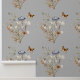 Kleed je kamer aan met dit prachtige, elegante, maar toch moderne boho vlinder wilde bloem behang. Gelegen op een grijze achtergrond met gele, crème en blauwe bloemen en een monarchvlinder die zich herhaalt.