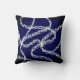 This bold accent designer throw pillow has white painted serpentine lines on dark blue in this abstract art design for modern homedecor. Art copyright Ann Powell all rights reserved.