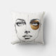 A powerful and artistic throw pillow featuring a highly detailed sketch of a female face, drawn in expressive graphite lines with intense gaze and strong features. One eye is highlighted with a bold golden accent, adding contrast and depth to the monochrome palette. This modern surrealist-inspired design makes a striking statement in any contemporary or artistic space. Perfect for lovers of edgy, high-contrast art.