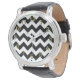 Bold Black & White Chevron Zig Zag Pattern Horloge