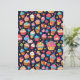 Een gedurfde rijke kleur verjaardagsontwerp voor zowel kinder als volwassen. Dit patroon bevat taarten, ijsjes en leuke personages.