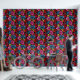 A bold maximalist pattern with bright red, pink, and blue flowers, electric green leaves, and grey goth accents.