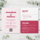 Viel uw bruiloft met een levendige, gedurfde en gekke uitnodiging met een QR-code voor eenvoudige RSVP- en trouwgegevens. In een palet van magenta en roze, zal deze retro-geïnspireerde uitnodiging een speciale aanraking aan uw speciale dag toevoegen. Maak van je bruiloft een gedenkwaardige dag met een gedurfde en stijlvolle uitnodiging.