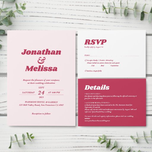 Bold Modern Retro Viva Magenta WeddingOntworpen door Jessica Senarlo