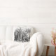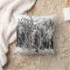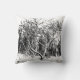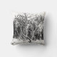 Gooi het kussen in een winterscène van met sneeuw bedekte bomen met een winterbos achtergrond - digitaal verbeterde fotografie in zwart-wit
