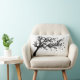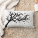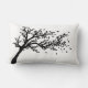 Een sterk zwart-wit afbeelding van een boom die gebogen is en in de wind blaast, laat het verstrooiing in de lucht achter. Een perfecte kussen voor elk decor.