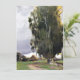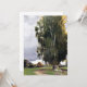 Kunstmatig afbeelding van een klein dorp met een met bomen beklede rijstrook. schilderij van Boris Kustodiev.