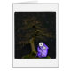 Paarse cartoon met twee tanden en puntige oren die onder een bonsaiboom zitten op een sterrennacht. Originele digitale cartoon kunst van Taylor Addams.