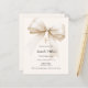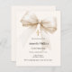 Een zacht beige, crèmekleurige achtergrond, versierd met een grote boog en een gouden kruis. Personaliseer en voeg een naam en details toe. 1 vel = 1 uitnodiging bedrukt rand tot rand.