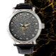Sagittarius Watch met: industriële, metalen horlogestyling met gemakkelijk zichtbare grote aantallen. Origineel horloge gezicht ontwerp bedekt met goud, zilver, diamanten, edelstenen en astrologische sterrenbeelden cirkel. (de achtergrond van het horloge is afgedrukt / bevat geen echte edelstenen).