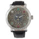 Sagittarius Watch met: industrial, Steampunk horloge styling met gemakkelijk te zien grote aantallen. Origineel horloge gezicht ontwerp bedekt met goud, diamanten, smaragden, robijn edelstenen en astrologische sterrenbeelden cirkel. (de achtergrond van het horloge is afgedrukt / bevat geen echte edelstenen).
