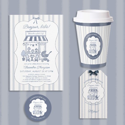 Coffee Brunch Baby Shower Theme Hand-Drawn BlueOntworpen door Christine Ellis