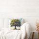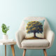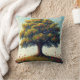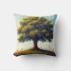 Dit kussen heeft een boomconcept. Het heeft warme boomkleuren en prachtig versierde vruchten.
