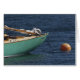 Een afbeelding van een blauwgroene boot en oranje boei.