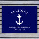 Een stijlvolle moderne nautische deurmat voor uw boot met een witte illustratie van een anker op een marineblauwe achtergrond. U kunt uw naam aanpassen aan de naam van uw boot, de naam van de kapitein of familie of iets dergelijks, en een locatie.