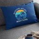 Welkom aan boord Bootnaam Zomer Palm Trees Sunset Retro Style Marine Blauw Accent Kussen.