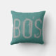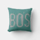 De kussen van de draad kenmerkt BOS - de afkorting van de Luchthaven voor Logan International Airport, Boston, MA. Grungy urban Grey text op blauwgroen achtergrond