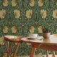 Verhoog uw interieur met de tijdloze elegantie van dit behang, geïnspireerd door de iconische design van William Morris. Dit prachtige patroon heeft majestueuze pimpernel bloemen en delicate bloesems, ingewikkeld verweven met weelderige groene bladeren en wijnstokken. Het kleurenpalet bestaat uit zacht pastelgroen, warm geel en gedempte gouden tinten, allemaal op een diepe bosgroene achtergrond. Perfect voor het toevoegen van een gevoel van klassieke verfijning en natuurlijke schoonheid aan elke kamer, dit behang combineert naadloos traditionele charme met moderne stijl, waardoor het een ideale keuze is voor het creëren van een serene en elegante sfeer in uw huis.
