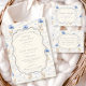 Een zoete, vintage-geïnspireerde ontwerp met delicate blauwe strikken, zachte gestreepte details en charmante illustraties van een blauwe bessentuin. Toile-stijl kunst met schattige dieren en fruitmanden geeft een klassiek sprookjesboekgevoel in een zachte poederblauwe palet. De sierlijke centrale lijst voegt elegantie toe terwijl de algehele look licht, verfijnd en tijdloos blijft. Perfect voor een babyshower met een zachte tuin-thema en een vleugje traditionele charme.