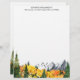 Persoonlijke tekst/naam letterhead met waterverf beschilderd herfstlandschap met bergen en bos.